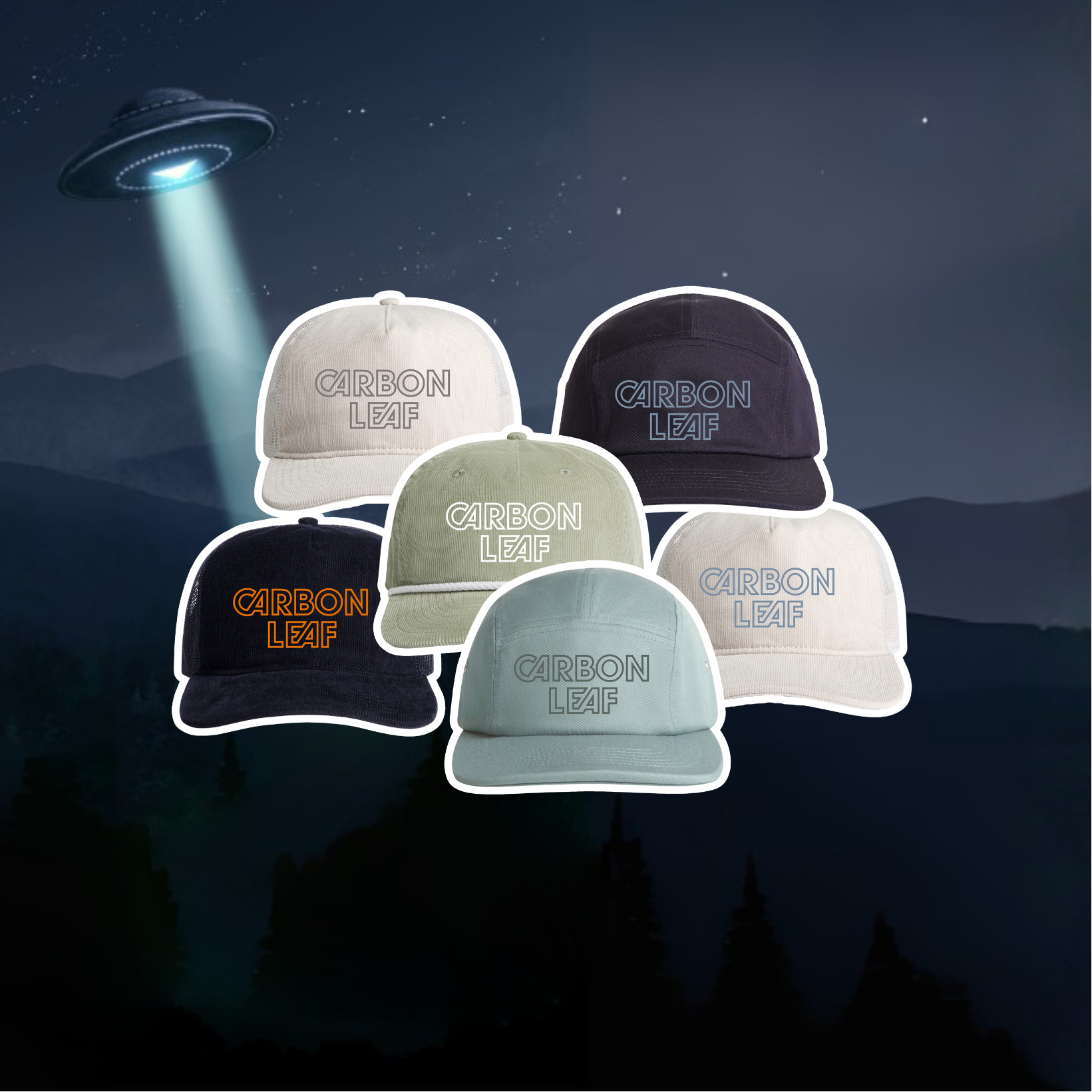 Hats! Carbon Leaf custom-embroidered in 6 styles: